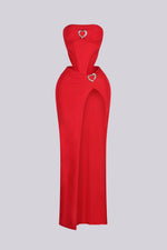 Strapless bodysuit featuring a heart shaped gold metal detail Matching maxi skirt featuring a metal detail and a high slit Double lining Top length 21.6"(S) Skirt length 43.4"(S) Back tie closure We recommend wearing pasties or no bra with this...