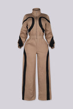 Zip front utility jumpsuit featuring contrast panel detailing at the chest and legs Finished with a fixed waist detail and a long wide-leg fit Length: 64" (Size S) Inseam: 32" (Size S) Zip front closure Bra friendly Runs true to size...