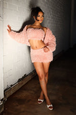 Low rise knit textured mini skort featuring ruffle details Length 11"(S) Slip on closure Runs true to size