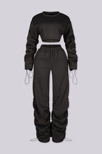 Unisex style crop jacket with stripes on sleeves Matching wide leg pants set with waistband and two side pockets Top Length 18.4"(S) Inseam 33.4"(S) Front zipper closure Bra friendly Runs true to size