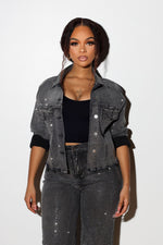 Streetwear style cropped jacket featuring mixed patch details, stud and pearl embellishments, and inner zipper Length 19.2"(S) Zip and snap button closure Bra friendly Runs true to size Please note: Colour may vary due to lighting on images. The product...