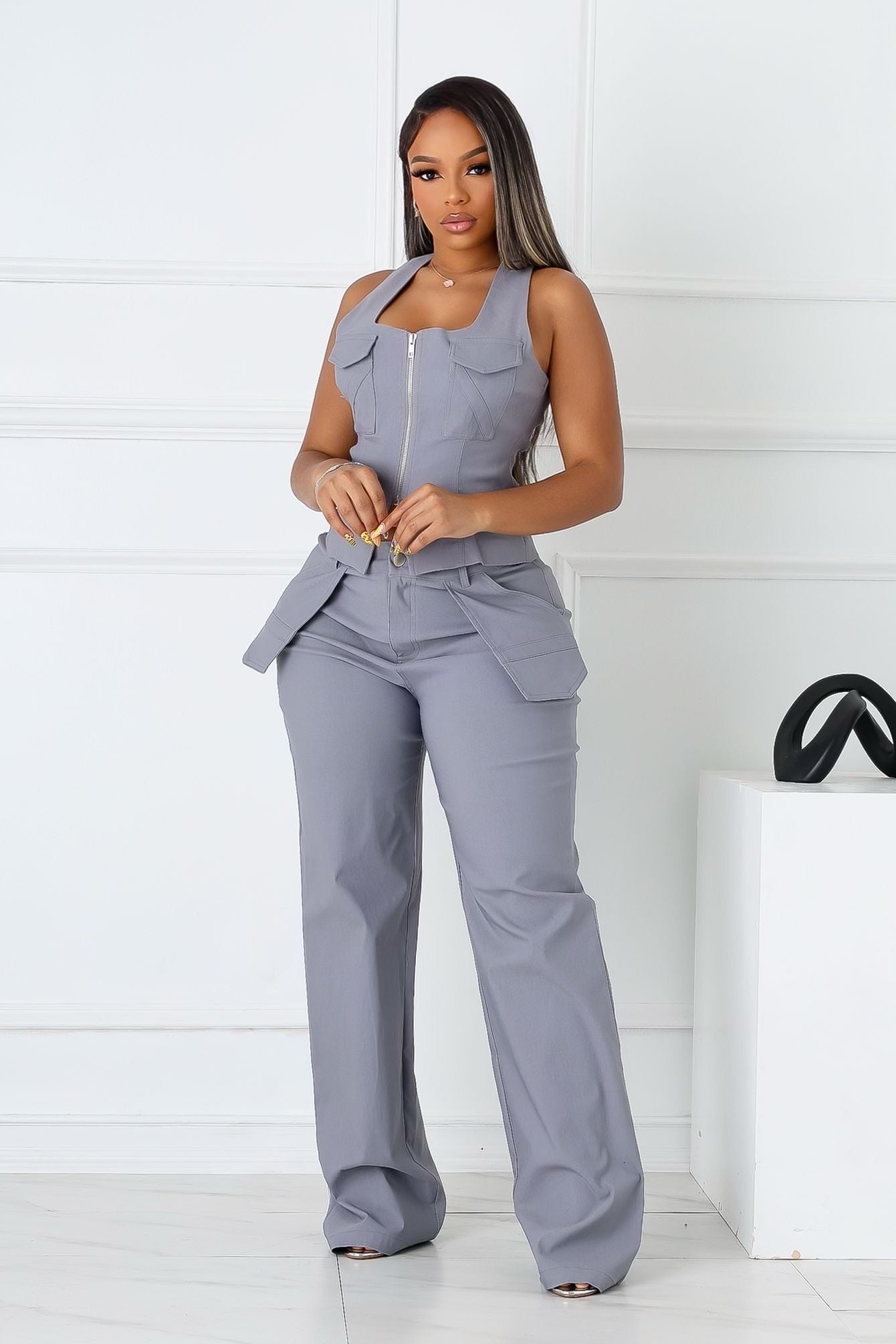 Cargo vest top featuring front flap and slip pockets and zipper closure