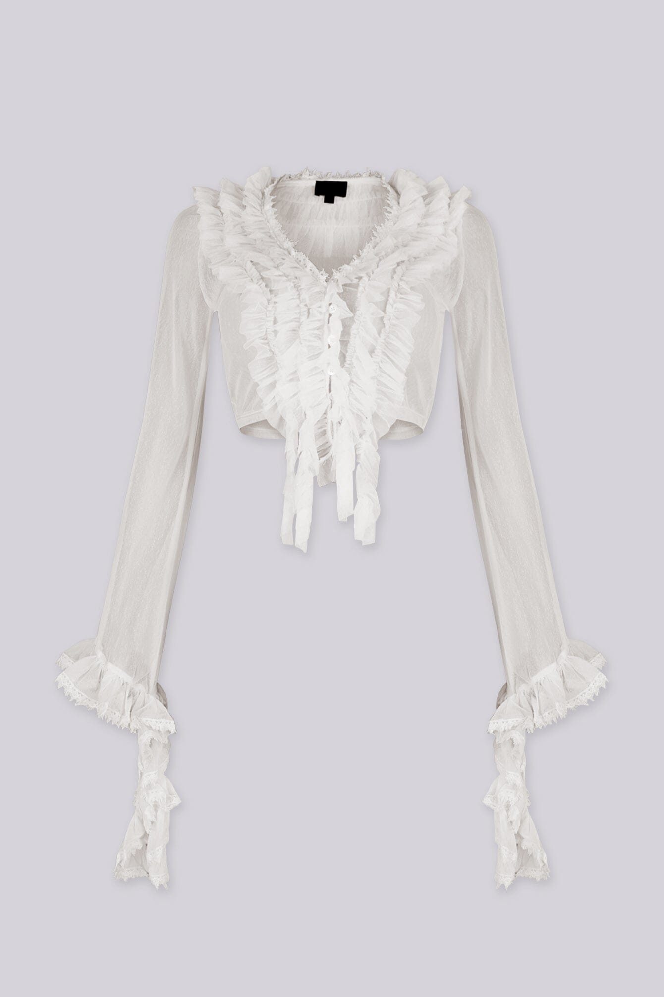 Sheer, long-sleeve cropped blouse with a button-up front