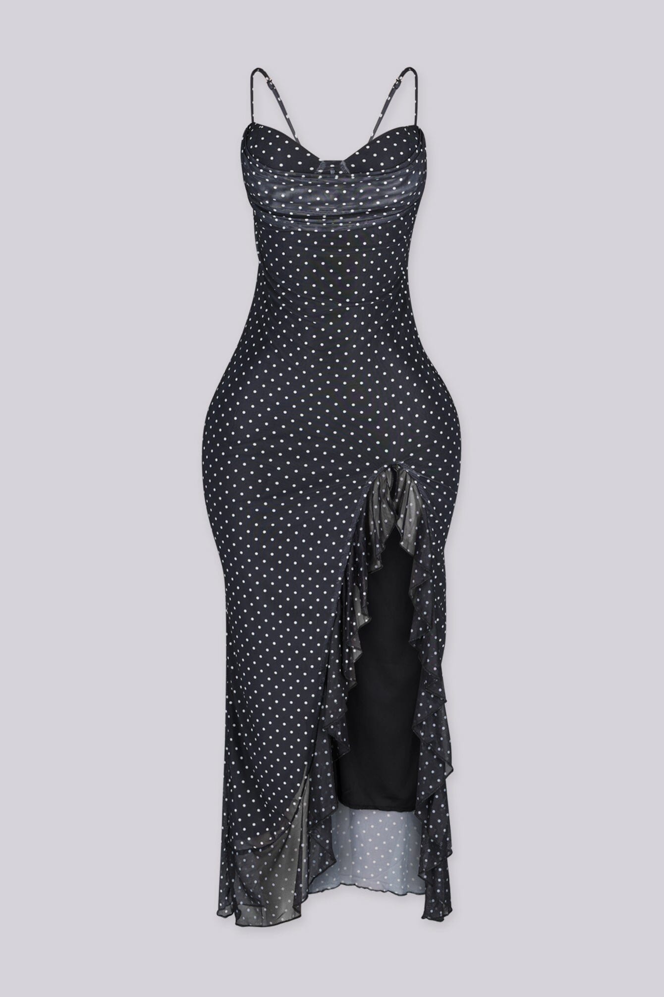 Polka dot padded bustier flowy midi dress