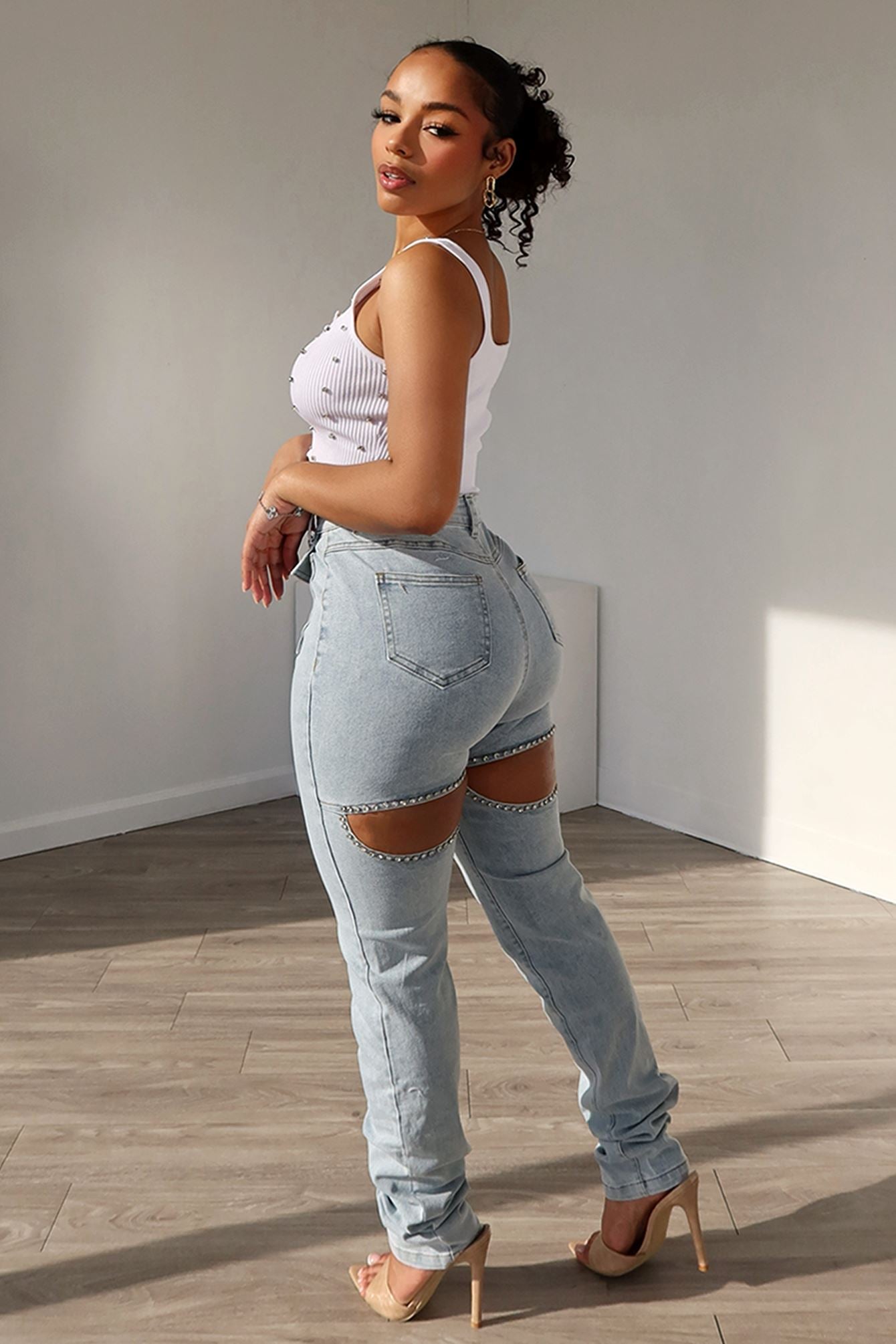 Lowkey Back Cut Out Rhinestone Jeans
